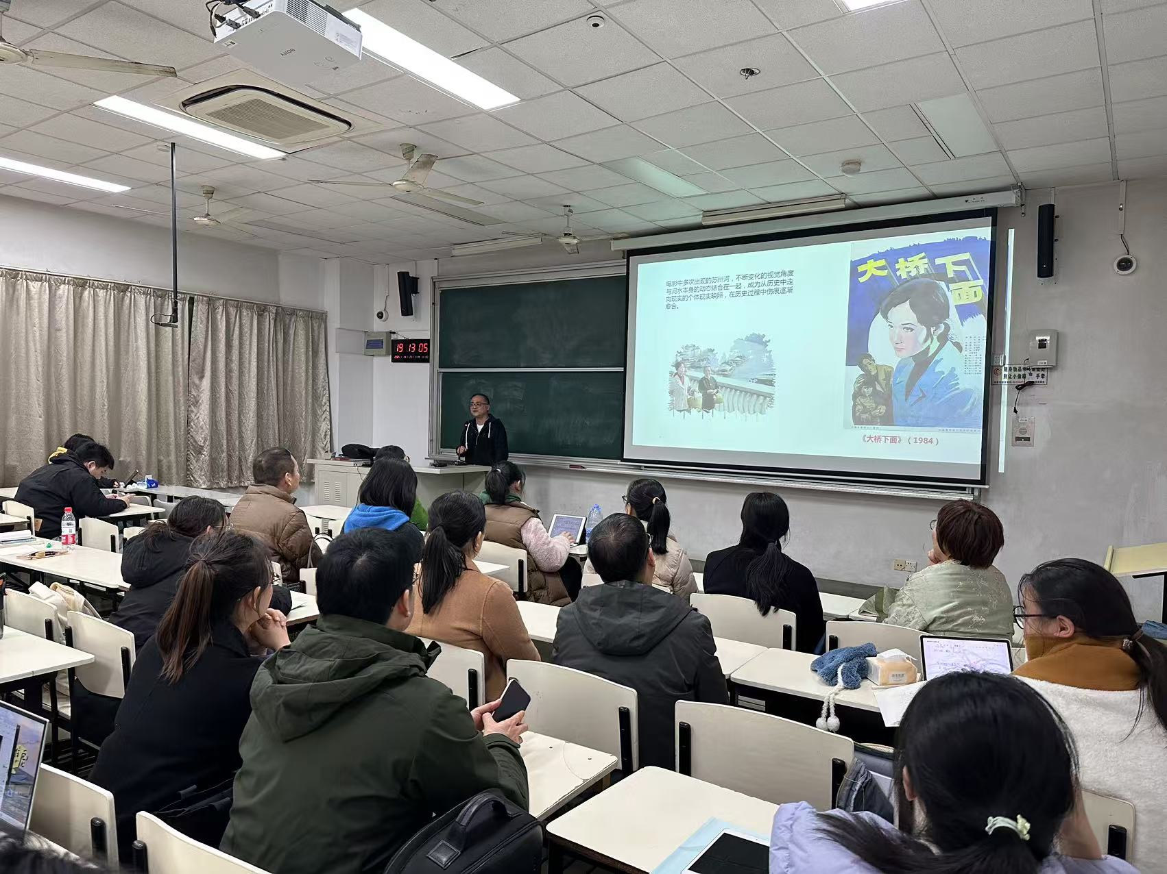 11月28日,赴上海大学马克思主义学院调研交流?!睹蠖枷牒椭泄厣缁嶂饕謇砺厶逑蹈怕邸方萄胁恐魅涡旌7褰淌诮樯芰恕陡怕邸房纬探萄胁渴ψ识游榻ㄉ琛⒖纬探萄Чぷ靼才?、实践教学、课程考核及科研工作等基本情况。上海大学马院欧阳光明教授围绕思政课教学、科研及青年教师培养与教研室老师进行了亲切的交流。教研室老师一行又走访了上海大学马院顾晓英名师工作室。在顾晓英教授的带领下,教研室教师深入上海大学美术学院“美丽中国”课堂、上海大学电影学院“光影中国”课堂听课,深刻感悟只有依托学科充分挖掘专业课程的“思政元素”,才能推动“思政课程”向“课程思政”的转变。